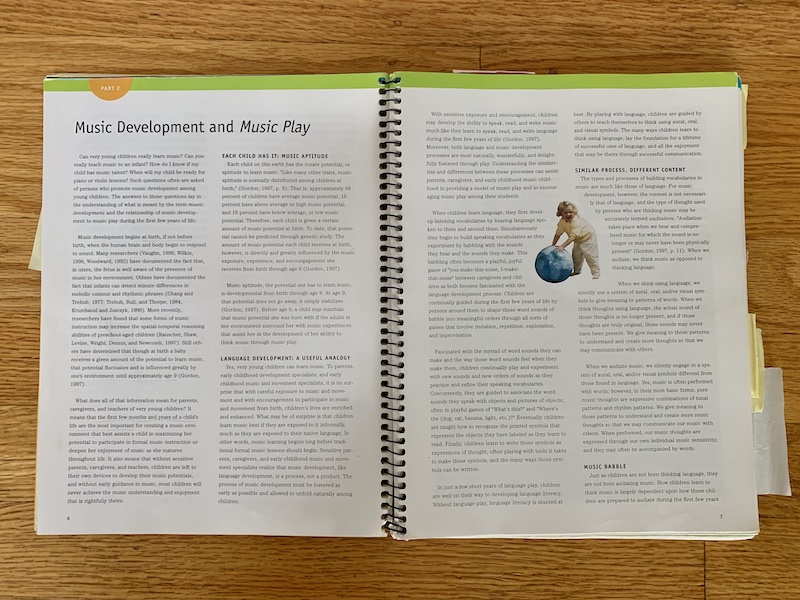The authors of Music Play include big names in the MLT world such as Wendy H. Valerio, Alison M. Reynolds, Beth M. Bolton, and Cynthia C. Taggart — as well as Dr. Edwin E. Gordon himself. The book was published in 1998. This curriculum was created as part of the Jump Right In curriculum, rounding out the offerings for teachers of babies, toddlers, and preschool children.